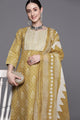 Mustard yellow printed Kurta with Trousers with dupatta