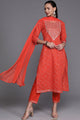 Orange & white kurta with palazzos & dupatta