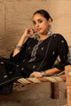 Dhiyona IE Black Embroidered Pure Cotton Round Neck Tunic With Trouser