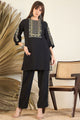 Dhiyona IE Black Floral Embroidered Round Neck Straight Kurta With Trouser