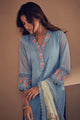 Dhiyona IE Blue Floral Embroidered Thread Work Straight Kurta With Trousers & Dupatta