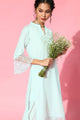 Radiate all the festive vibes as you flaunt this alluring kurta set. The gorgeous three-quarter flared sleeves and the comfortable calf length will make you outshine everyone you are with.