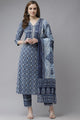 Dhiyona IE Blue & White Ethnic Print Gotta Patti A-line Kurta Trousers & Dupatta