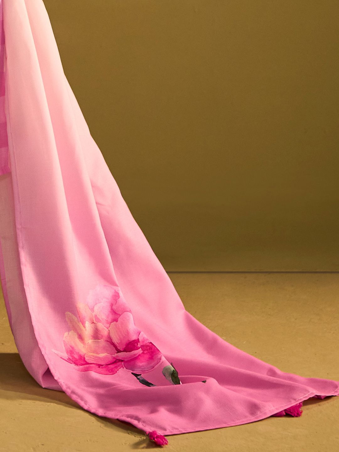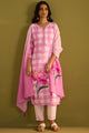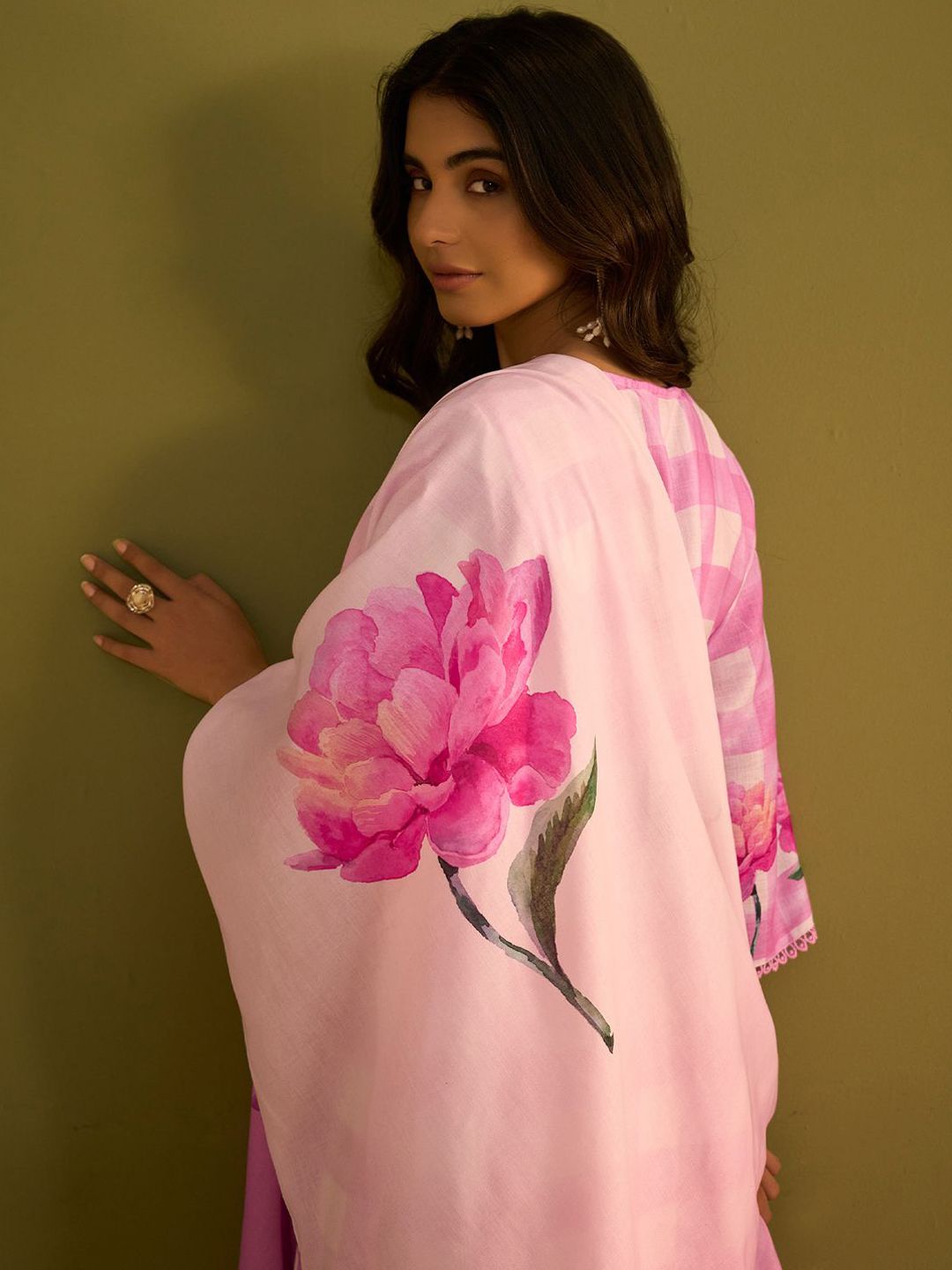 Dhiyona IE Checked V-Neck Linen Straight Kurta With Trousers & Dupatta