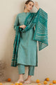 Dhiyona IE Chevron Printed Mandarin Collar Pure Cotton Kurta with Trousers & With Dupatta