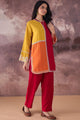 Red, yellow and orange colourblocked kurti with trouser