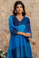 Blue colourblocked tunic, has a v neck and three-quarter sleeves