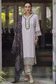 Cream-coloured & black embroidered kurta with trousers & dupatta