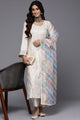 Dhiyona IE Cream-Coloured Embroidered Sequined Cotton Zari Kurta With Trousers & Dupatta