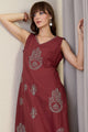 Maroon embroidery top , has a V-Neck and sleeveless, secured with slip-on closure
