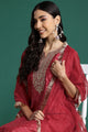 Red embroidered Kurta with Trousers with dupatta