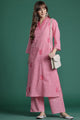 Dhiyona IE Embroidered Checked Pure Cotton V-Neck Straight Top With Trousers Co-Ords