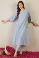 Dhiyona IE Embroidered Cotton V Neck Top With Trousers Co-Ords