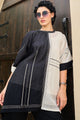 Black and white embroidered top, has a round neck and three-quarter sleeves, secured with slip on closure