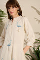 Off White and blue Embroidered A-Line Kurta, has Mandarin Collar,Three-Quarter Sleeves, and Straight hem