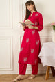 Dhiyona IE Embroidered Mandarin Collar Three-Quarter Sleeves Pure Cotton Tunic And Trousers