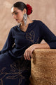 Blue embroidered tunic , has a Mandarin collar neck and long sleeves, secured with slip-on closure