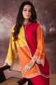 Yellow and Maroon embroidered tunic , has a mandarin collar and long sleeves, secured with slip-on closure
