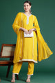 Dhiyona IE Embroidered Panelled Mirror Work Kurta With Trousers & Dupatta