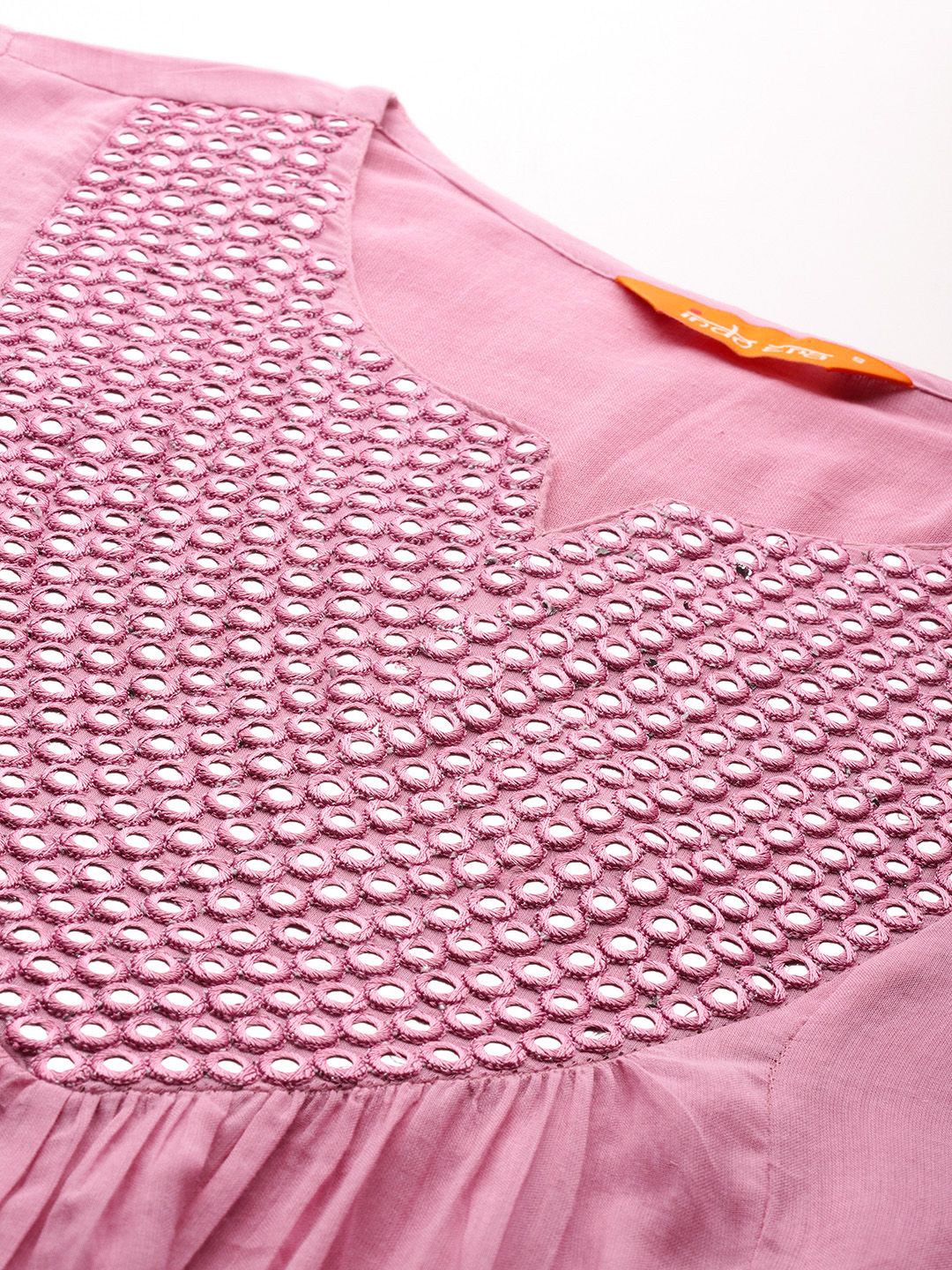 Dhiyona IE Embroidered Pure Cotton Kurta with Trousers & Dupatta
