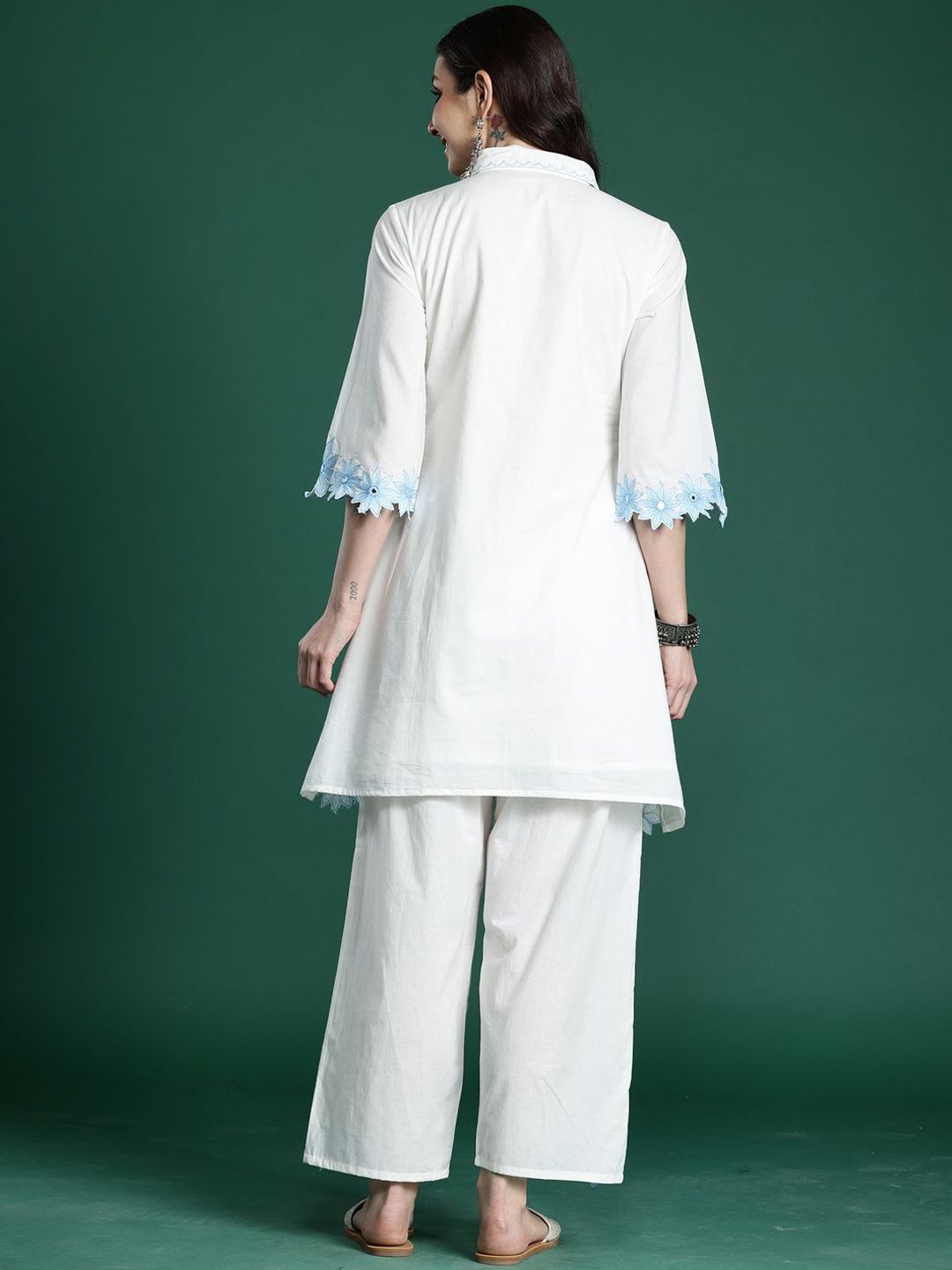 Dhiyona IE Embroidered Pure Cotton Shirt Collar Tunic With Trousers Co-Ords