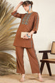 Dhiyona IE Embroidered Round Neck Top With Trousers Co-Ords
