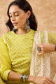 Dhiyona IE Embroidered Straight Sequinned Chanderi Cotton Kurta with Trousers & Dupatta