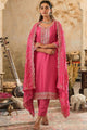 Pink and gold-toned embroidered kurta with trousers with dupatta