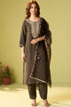 Dhiyona IE Embroidered Thread Work Liva Kurta With Trouser & With Dupatta