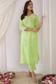 Green and white embroidered co-ords has tunic and trousers