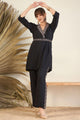 Top Consists Black Viscose Rayon Embroidered Long Sleeve Mandarin Collar neck