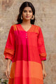 Red and Orange-colored embroidered top, has a V-Neck and Three-quarter sleeves, secured with slip-on closure