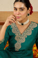 Green embroidered top , has a V-Neck and Three Quarter sleeves, secured with slip-on closure