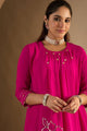 Pink embroidered tunic, has a round-neck and three quarter sleeves, Secured with slip on closure