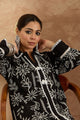 Black and white embroidered tunic, has a shirt collar neck and three-quarter sleeves