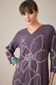 Grey and white embroidered tunic, has V-neck, three-quarter sleeves and slip-on closure