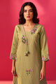 Olive-green embroidered trousers, has an elasticated waistband with slip-on closure