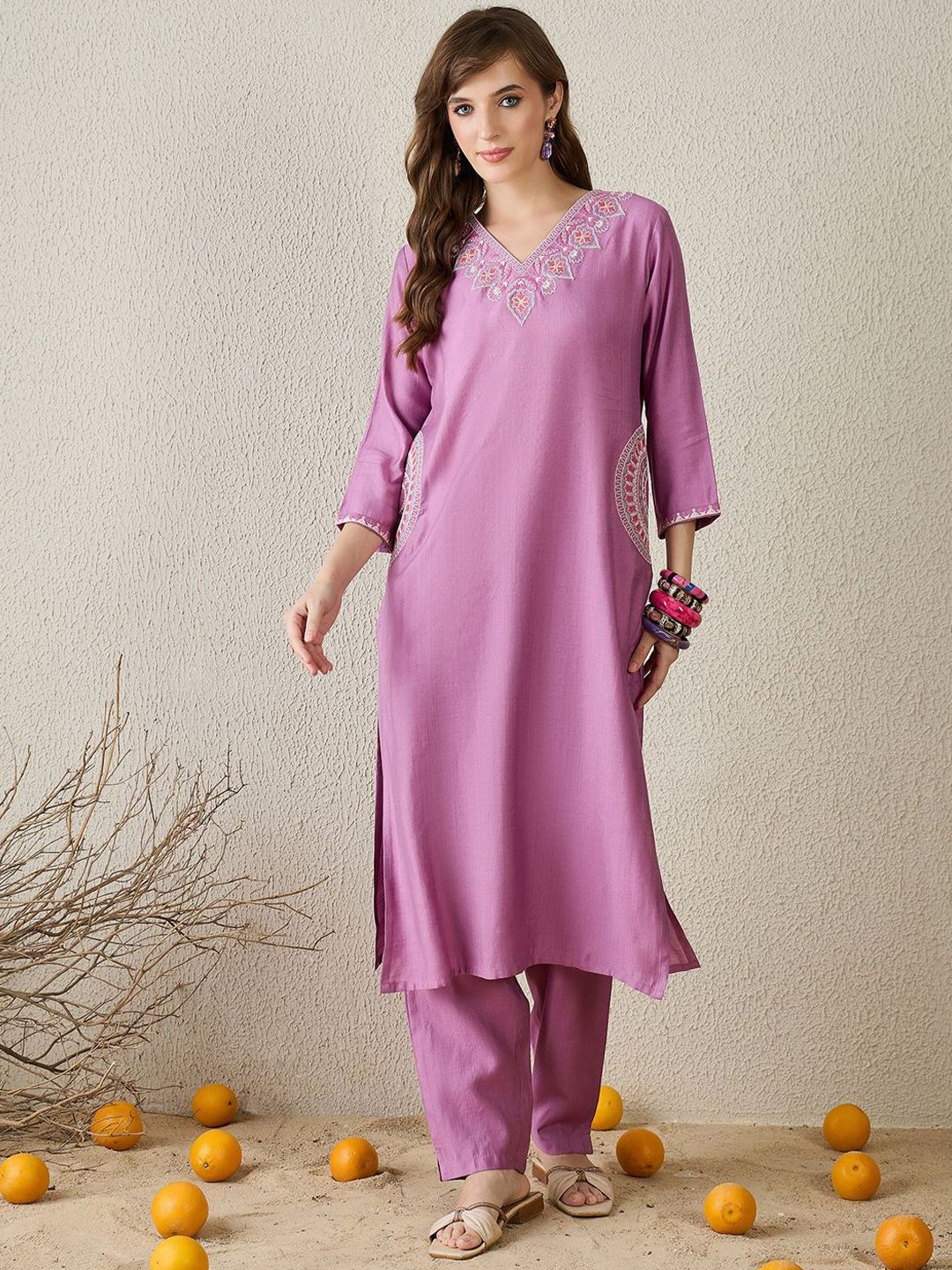 Dhiyona IE Embroidered V-Neck Tunic With Trouser
