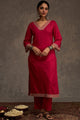 Dhiyona IE Embroidered Viscose Rayon Straight Thread Work Kurta With Trousers