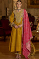 Yellow, pink and white embroidered kurta with trousers with dupatta