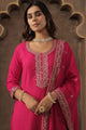 Magenta & gold embroidered kurta with trousers & dupatta