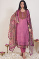 Purple and rose embroidered Kurta with Trousers with dupatta