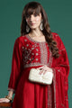 Red embroidered Kurta with Trousers with dupatta
