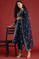 Navy blue embroidered Kurta with Trousers with dupatta