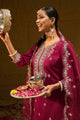 Maroon & gold-toned embroidered Kurta with Trousers with dupatta