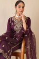 Burgundy and gold-toned embroidered kurta with trousers and dupatta