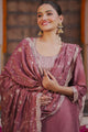 Mauve & white embroidered Kurta with Trousers with dupatta