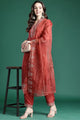 Rust embroidered Kurta with Trousers with dupatta