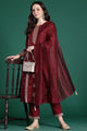 Maroon embroidered Kurta with Trousers with dupatta