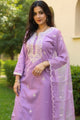 Lavender and white embroidered Kurta with Trousers & dupatta